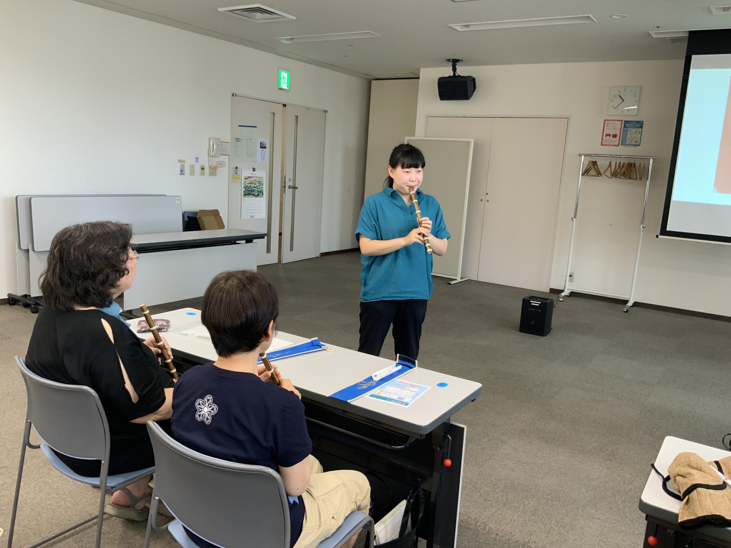 最初はみな音を出すのも大変でしたが、吹き方や童謡、伝統民謡など5曲を楽しむことができました。