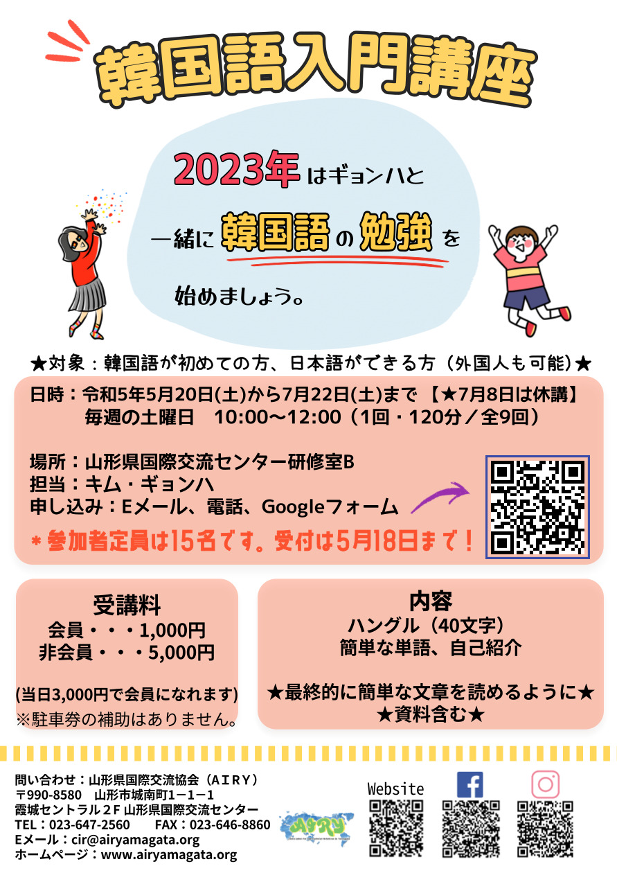 【韓国CIRから学べる】令和5年5~7月の韓国語入門講座