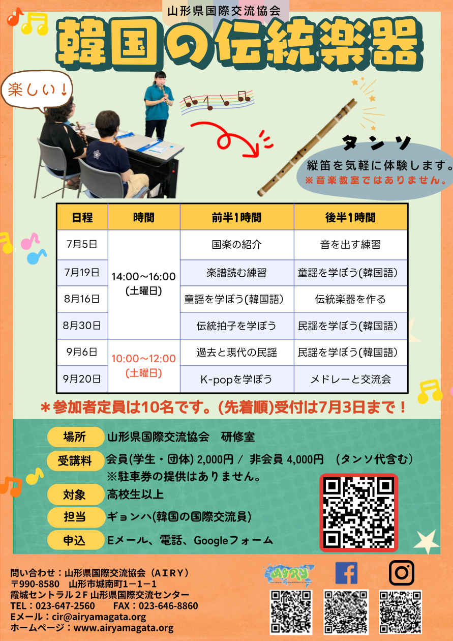 今回はなんと!!!韓国の伝統楽器体験の文化講座を実施します。