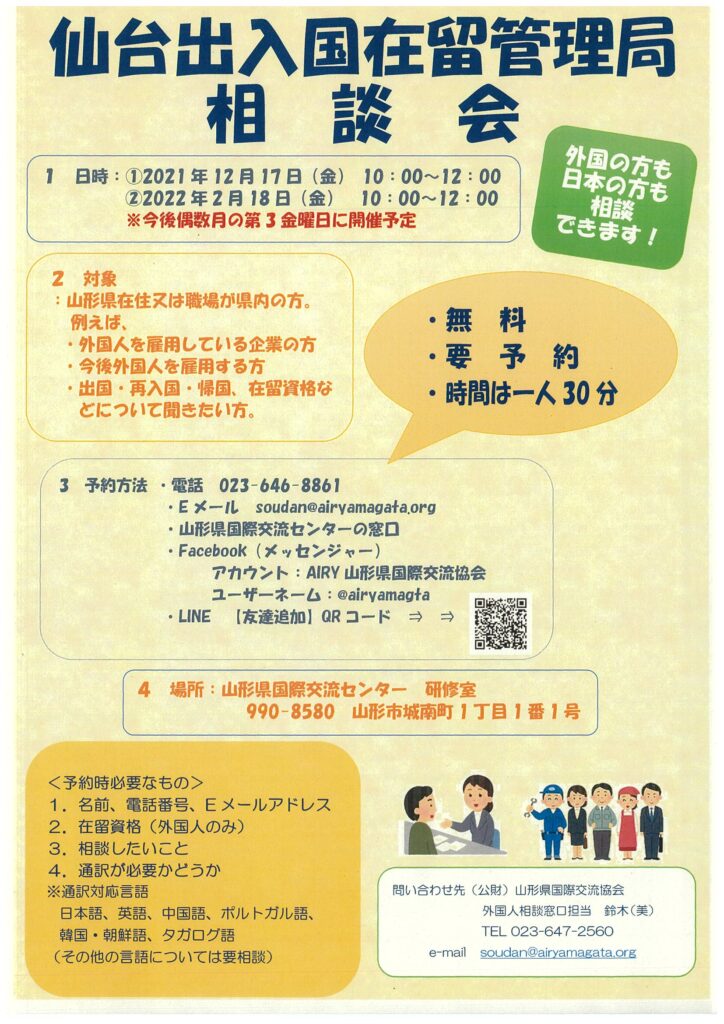 - 📢12月19日(周五)仙台出入国在留管理局的咨询会(免费)📢