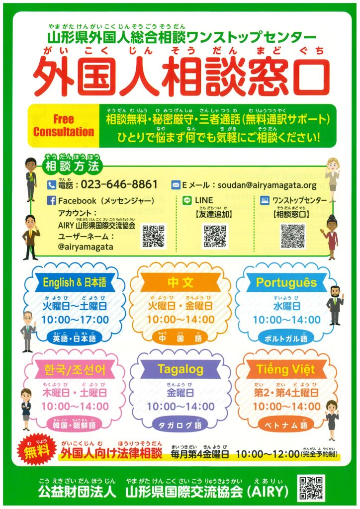 我们除了生活咨询以外,还定期举办有深受大家好评的 仙台出入国在留管理局工作人员以及山形县律师协会的法律咨询等专业人士的咨询会。