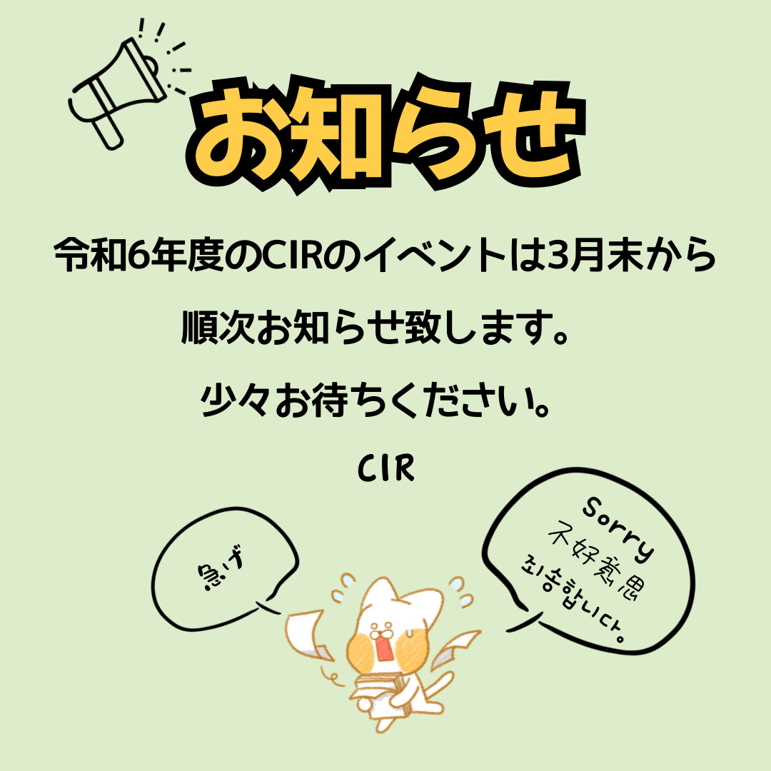 令和6年度のCIRのイベントは3月末から順次お知らせ致します。
