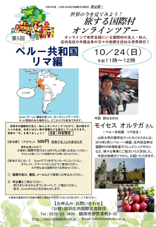 【出羽庄内国際村からのお知らせ】旅する国際村オンラインツアー ペルー共和国リマ編