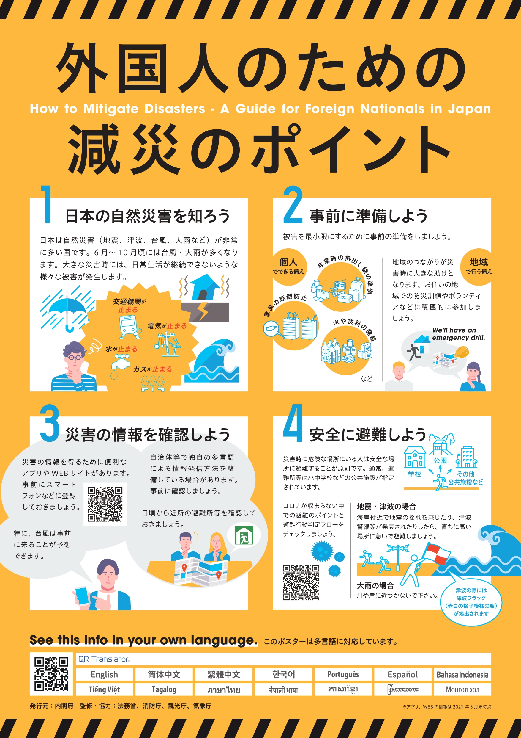 外国人(がいこくじん)のための減災(あぶないことからじぶんをまもること)のポイント