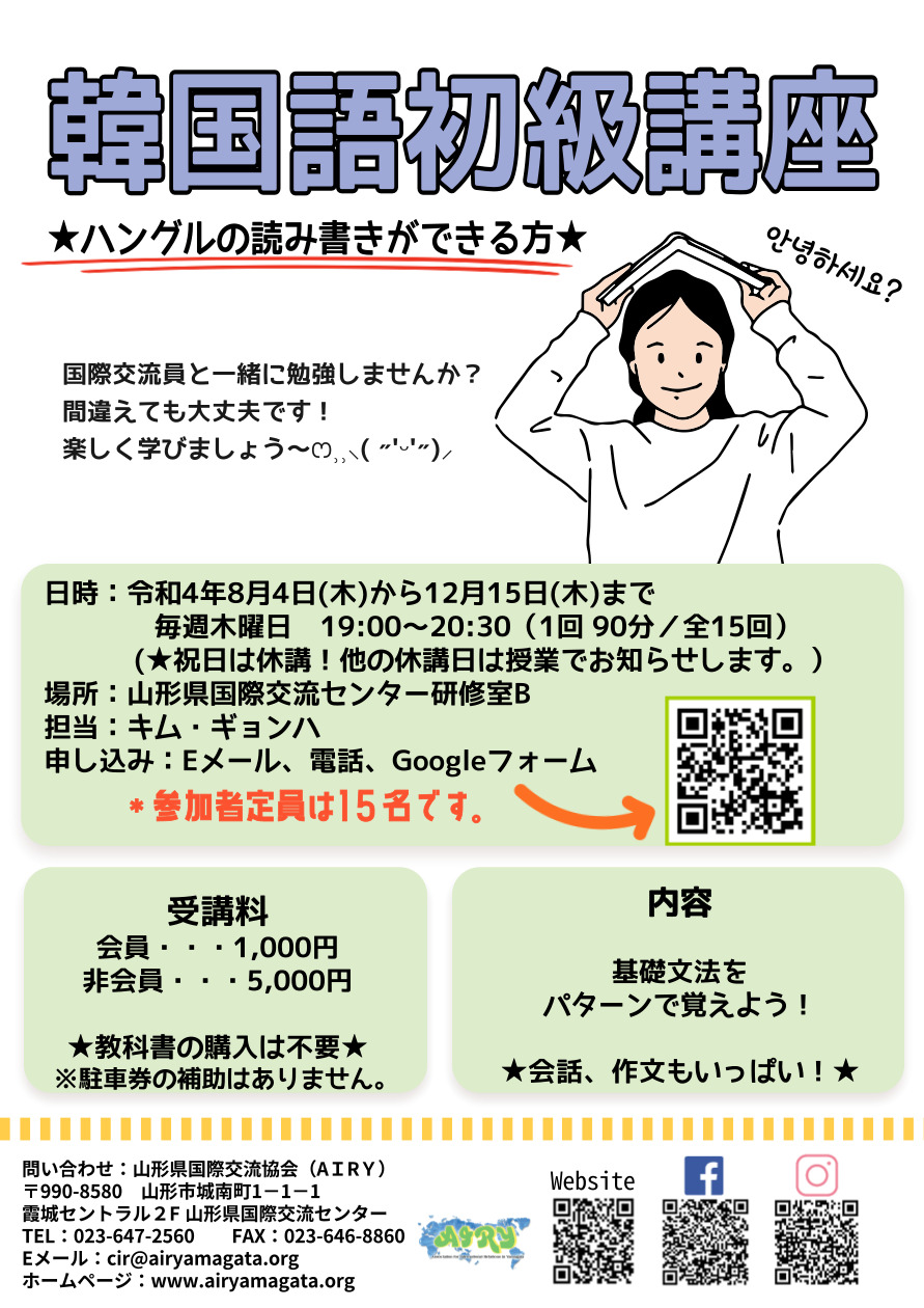 国際交流員のギョンハと一緒に韓国語を勉強しませんか?