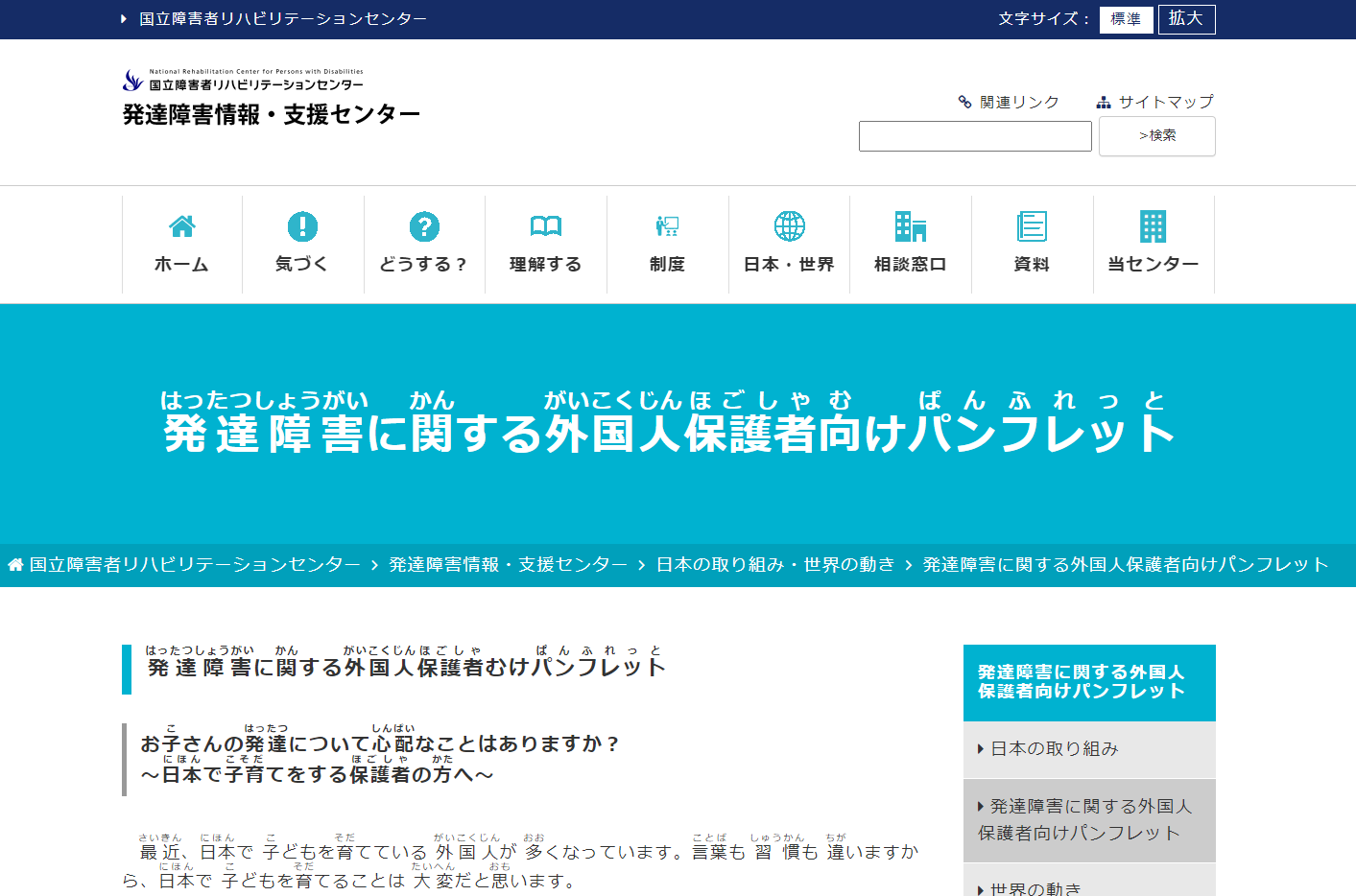 (国立障害者リハビリテーションセンター)発達障害に関する外国人保護者向けパンフレット 19 の外国語で作りました