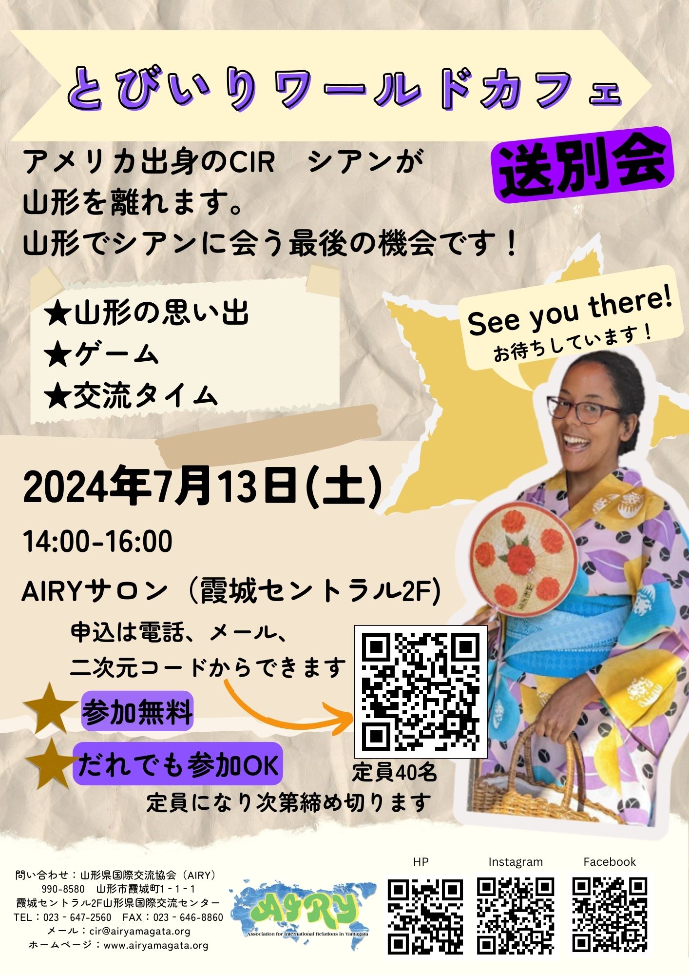 🌎7月13日(土)14:00-16:00とびいりワールドカフェ:シアンの送別会🌏