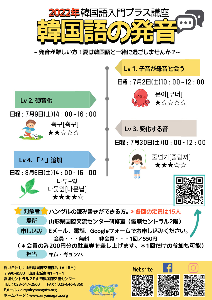 2022年夏特別ー韓国語入門プラス講座(発音)
