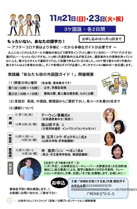 【地域を元気にする会からのお知らせ】「実践編 あなたも街の外国語ガイド!」参加者募集