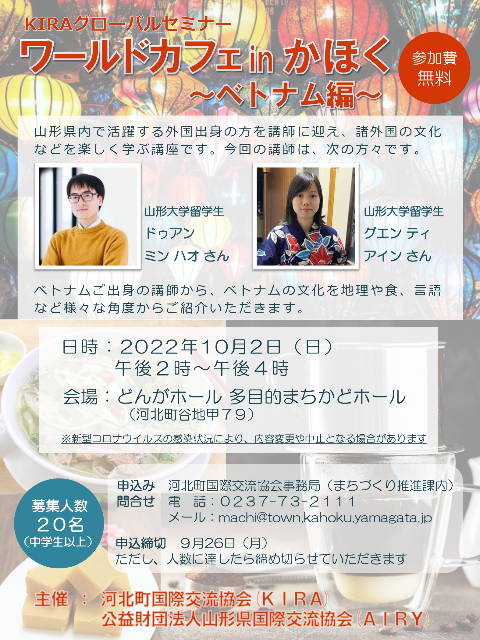 ■Liên hệ đăng ký:河北町国際交流協会事務局(河北町まちづくり推進課内)