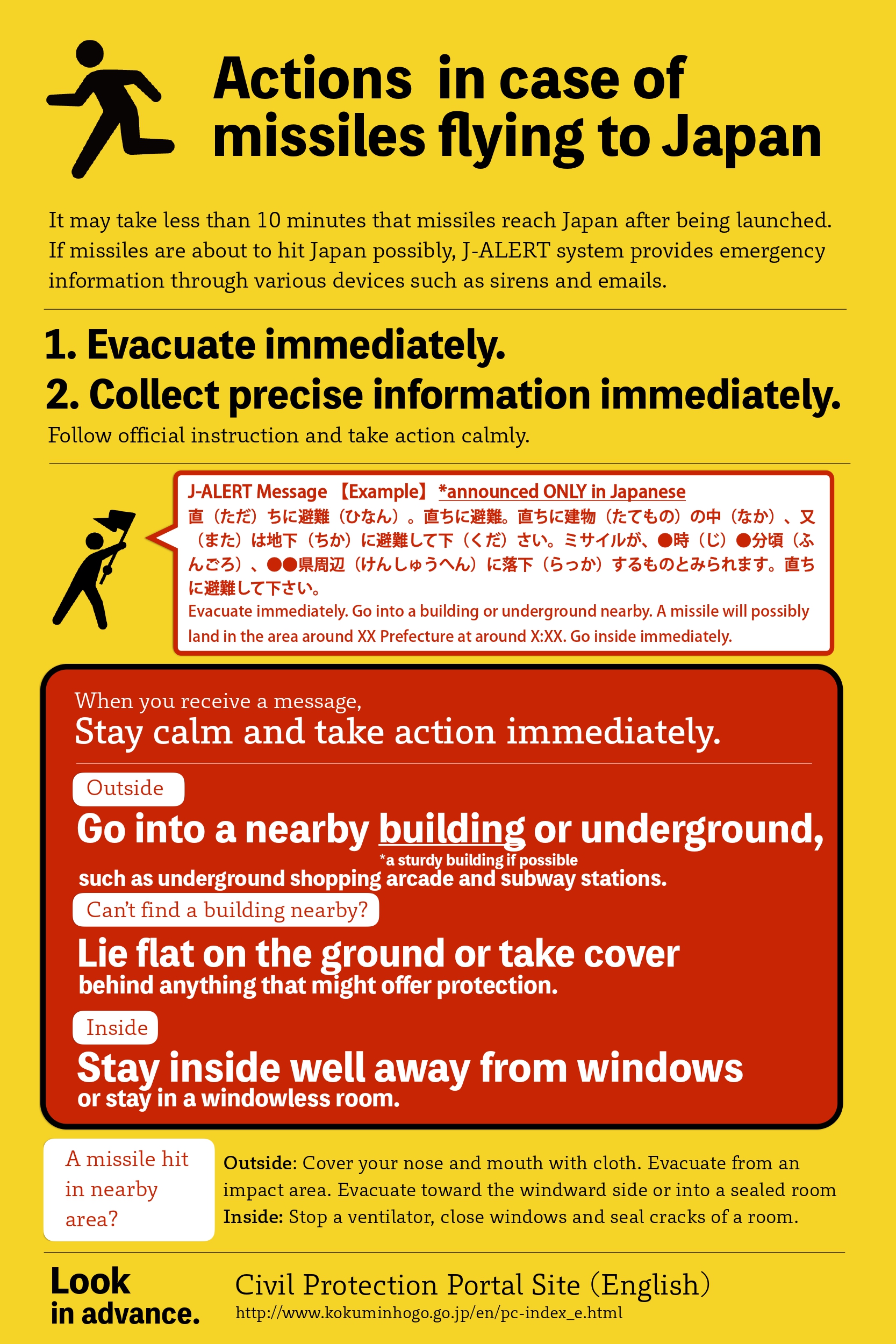 Jアラートとは何ですか 何をすればいいですか English, Chinese, Korean, Spanish, Portuguese, Vietnamese, Tagalog, Thai, Indonesian, Nepali(内閣官房)
