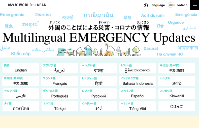あたらしい ニュースを 20の ことばで 見ることができます。