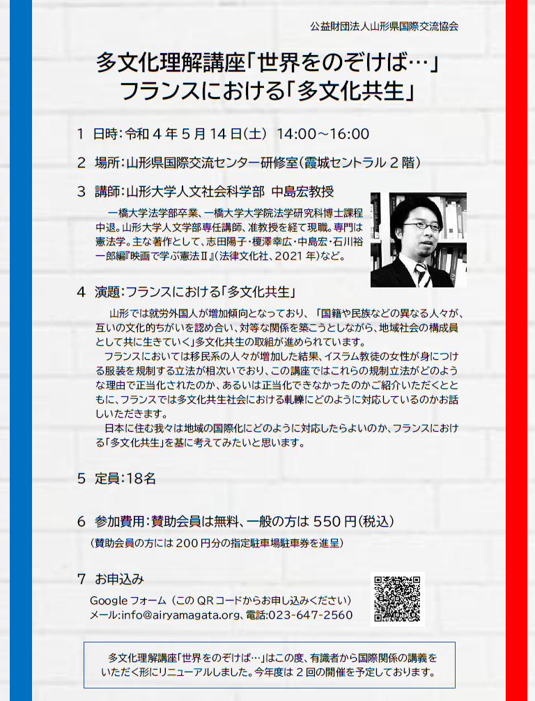 山形では就労外国人が増加傾向となっており、「国籍や民族などの異なる人々が、互いの文化的ちがいを認め合い、対等な関係を築こうとしながら、地域社会の構成員として共に生きていく」多文化共生の取組が進められています。