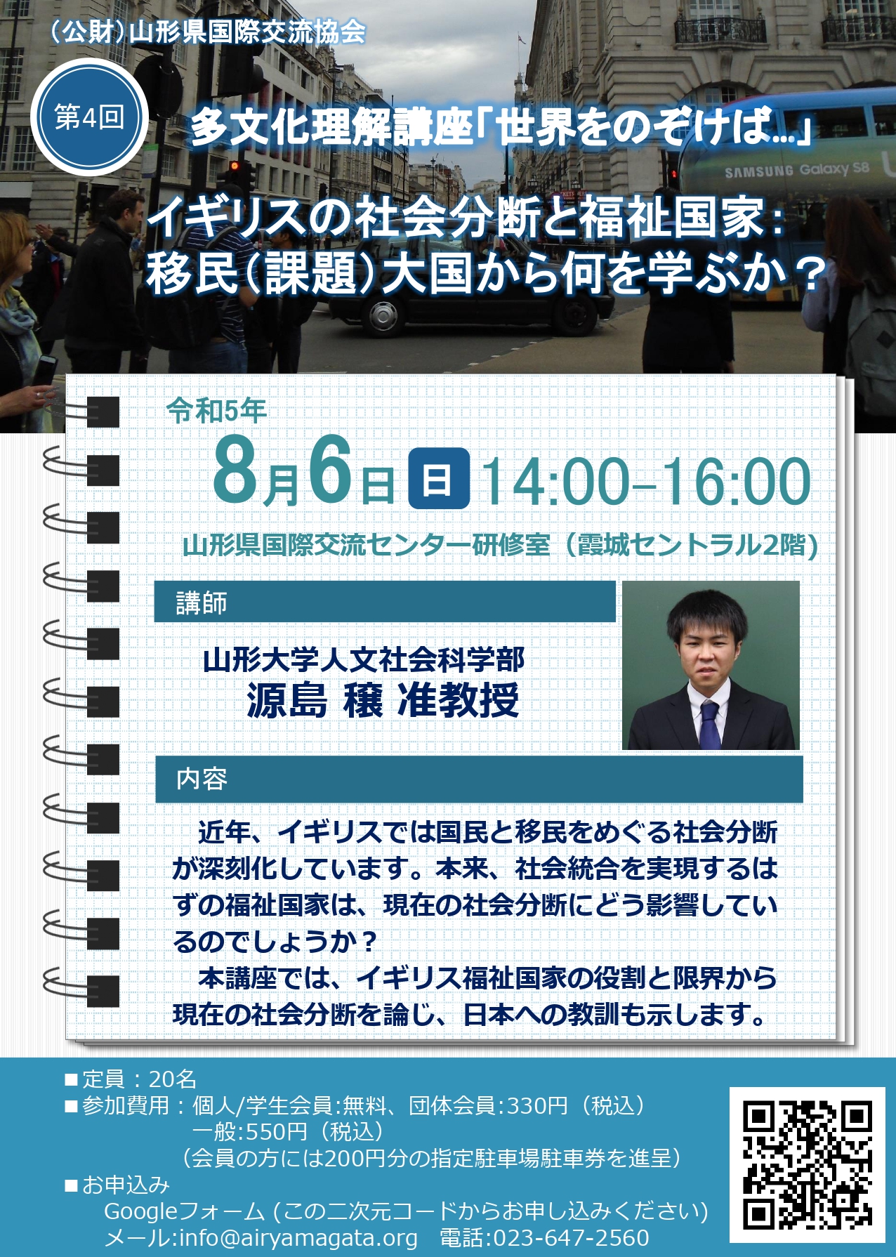 【満員御礼】多文化理解講座「世界をのぞけば…」イギリスの社会分断と福祉国家:移民(課題)大国から何を学ぶか? 8/6