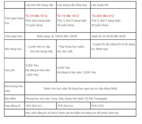 Giới thiệu các lớp học tiếng Nhật trong Tỉnh Yamagata